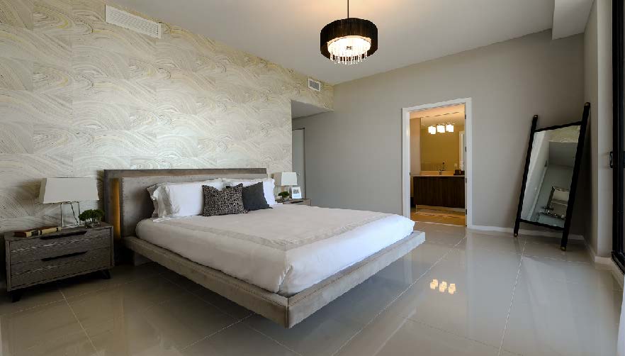 - Pisos contemporáneos de baldosas porcelanosa de 24”x24” disponibles en una variedad de colores.