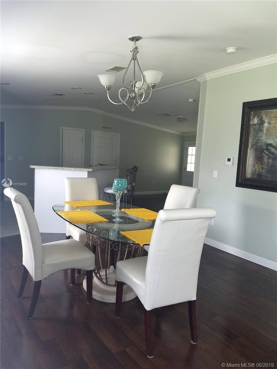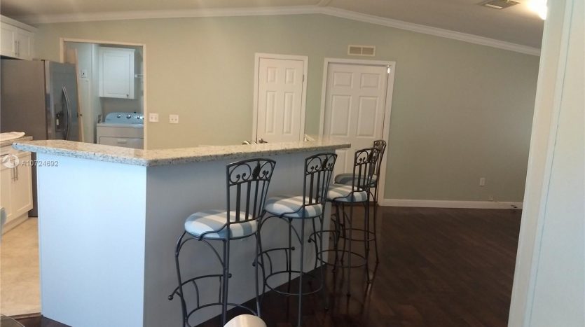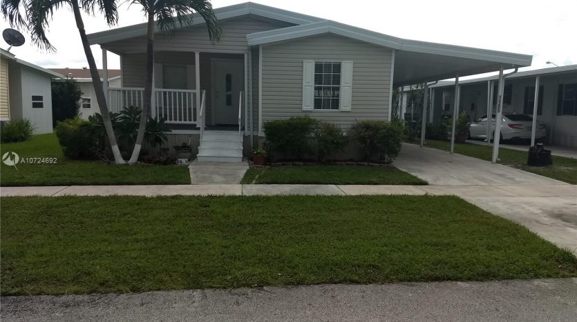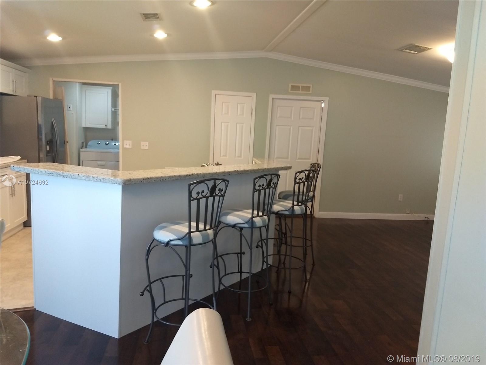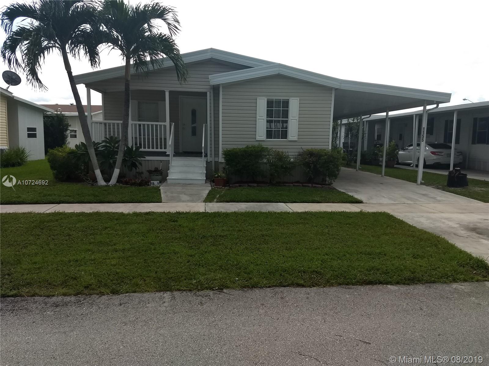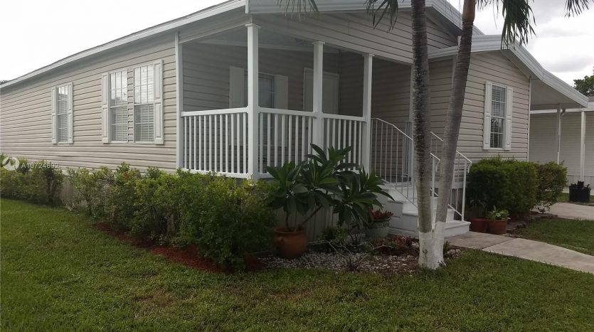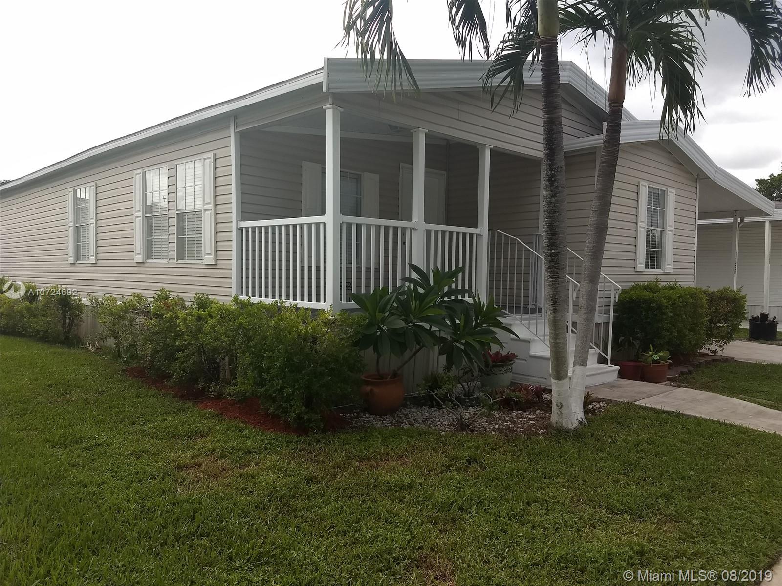Great Location!!!! Beautiful place to live! Gorgeous manufactured home in South Florida’s Premier Community. Excellent conditions, 3 Bedrooms with carpet floors , 2 Bathrooms with tile floors, Split floor plan, Living/Dining area with wood floors, spacious open kitchen renovated with new Stanley appliances, wood cabinets, granite counter top, breakfast bar and tile floors. Laundry room into/unit. Large Master room whit spacious master bath with walk-in closet, central A/C 2016. The Community is very Safe with green areas, playgrounds, tennis courts, basketball court, gym, sauna, game room, pool and BBQ areas. With 3 main access roads into the community and easy access to supermarket, restaurants and shops, quick access to major roads. No age restrictions community.