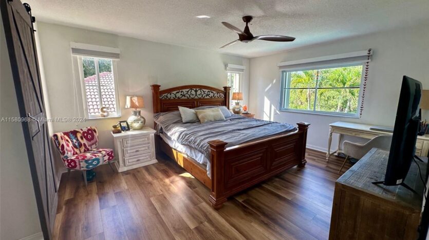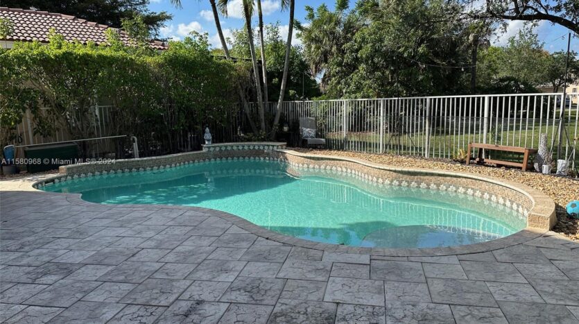 This stunning 5-bedroom, 3.5-bathroom house is in the exclusive gated community of Savanna at Weston. The property offers ultimate privacy, backing onto a passive park. With a fully fenced and lushly landscaped yard, it is perfect for entertaining. Enjoy the freeform pool with a paver patio and electric awnings. The home features upgraded stainless steel appliances, window treatments, and accordion shutters for added convenience.
