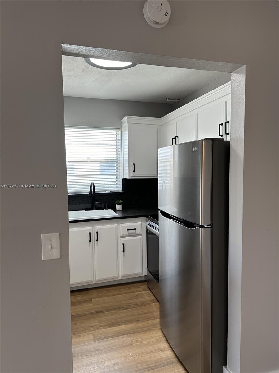 This is a +55 community. This newly remodeled 1-bed, 1.5-bath corner unit on the first floor is a true gem, featuring brand new appliances and renovated flooring throughout. Equipped with central AC, storm shutters, and innovative LED matte black ceiling fans, this unit merges comfort with modernity. The inclusion of a smart thermostat ensures an average saving of 15% on annual cooling expenses. The sunroom, highlighted by an 8-foot storage solution cabinet, offers breathtaking views of the canal, creating a serene living environment. Perfect for anyone seeking a blend of style and functionality in a prime location.This is a +55 community.