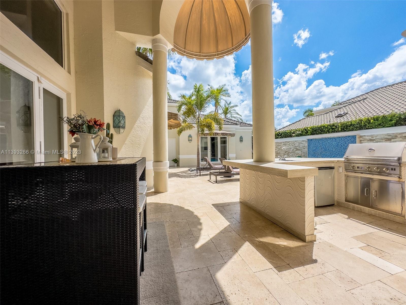 Welcome to this exquisite 5-bedroom, 6-bathroom home in the prestigious Weston Hills community. The interior of this impressive property has high-end finishes and modern conveniences, creating a sophisticated and contemporary atmosphere throughout. The generously sized bedrooms offer their occupants privacy and comfort, ensuring a peaceful retreat. It also features impressive common areas, a spacious living room, formal dining room, inviting family room, and quartz gourmet kitchen with Italian cabinetry, providing the perfect spaces for relaxation and entertaining. Step outside and be enchanted by the outdoor oasis, a spacious pool awaits, inviting you to take a refreshing dip on warm days. This area also has an elegant Dekton barbecue bar, ideal for enjoying delicious meals outdoors.