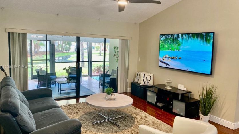 Lovely Villa in desirable Weston. NEW 2021 Roof. The home is equipped with a Kitchen with granite counter tops and Stainless steel appliances. Huge Master bedroom for an office space, nice atrium inside unit, large living and dining room area. Laminate floor throughout house. Steps to complex pool. Covered screened-in porch with a garden view. The community has many amenities including bowling, roller-skating, basketball, swimming, Tennis Court. Not to mention, Weston is an A rated school district. HOA fee covers basic cable, water & sewer, grass cutting and property insurance on the roof. A great opportunity to live comfortably here!