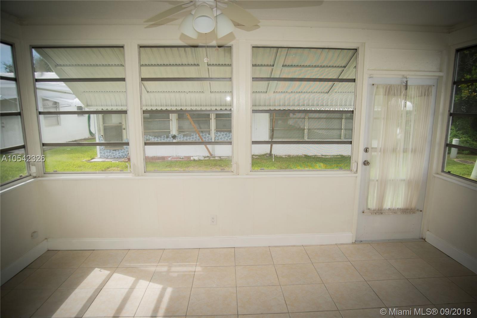 One of a kind home, private courtyard, and a carport. Storm shutters, tile floors, new appliances and cabinets. Leisureville offers great amenities for a low maintenance fee, which includes: two clubhouses with 2 heated pools, free shuttle bus, 9 hole golf course, maintenance of lawn, painting of outside home, power washing of roof and more. Close to I95, malls, restaurants, and beaches. Excellent 55+ community.