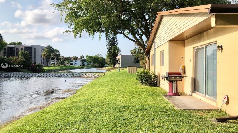 Amazing corner 3 bedrooms, 2 bathrooms. Kitchen with stainless steel appliances and granite counters.Tile floor in social areas and new vinyl floor in the rooms ,beautiful water views and BBQ space. Shared garage with extra extra storage and Washer/Dryer on unit exterior features next to the garage.Friendly and quiet community with a very well maintained pool, next to golf courses (Spring tree country club) Centrally located close to Sawgrass Mills, movie theater, BB&T Center, restaurants, and more !!!! Easy to show . MAKE YOUR APPOINTMENT NOW .