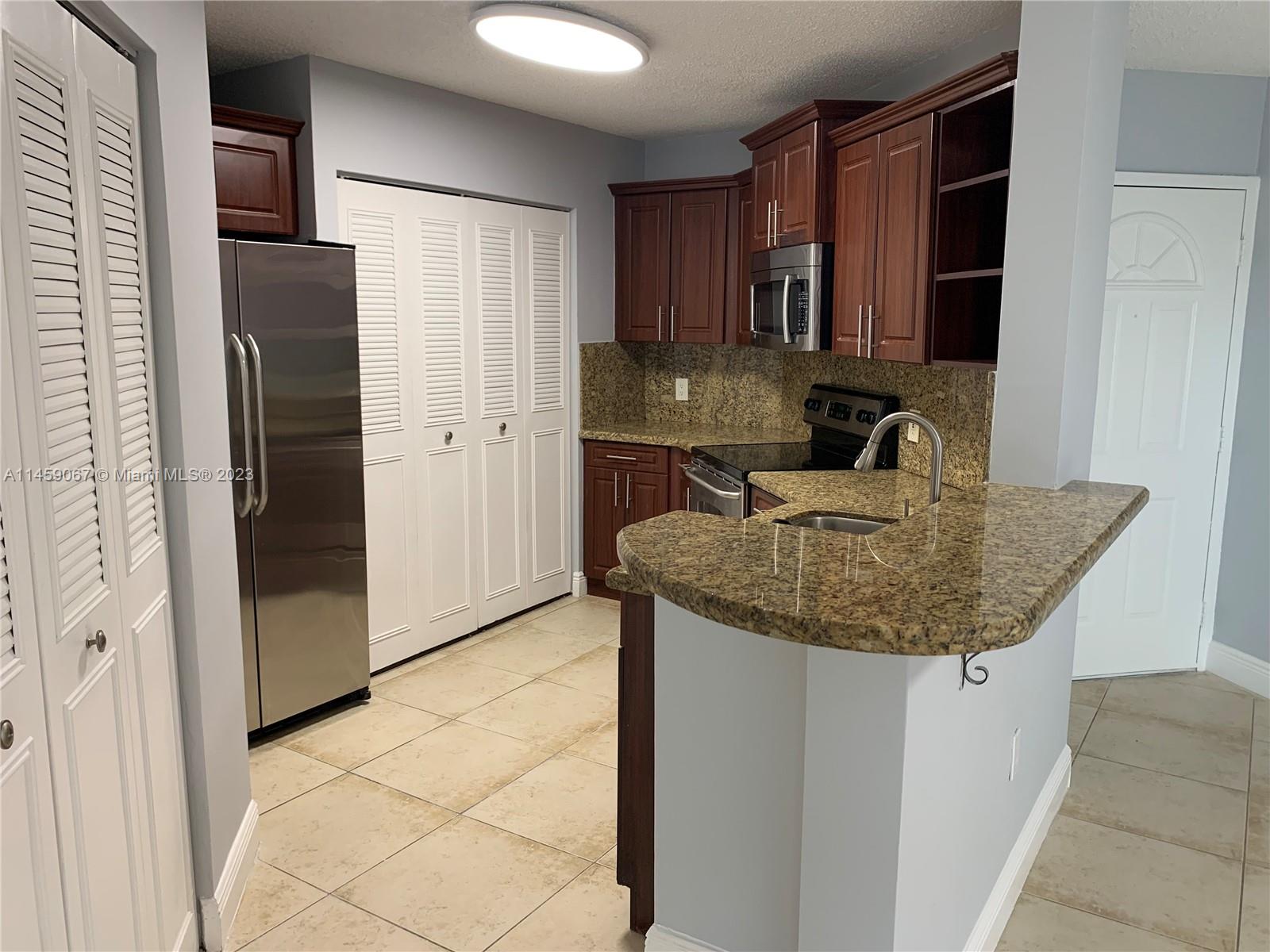 EXCELLENT FIRST FLOOR UNIT. NEWLY PAINTED.BRAND NEW COMPLETELY REMODELED BATHROOMS. KITCHEN WITH STAINLESS STEEL APPLIANCES AND GRANITE COUNTER.NEW FIXTURE LIGHTS IN THE KITCHEN AND LIVING ROOM. NEW WASHER AND DRYER INTO UNIT. COMMUNITY OFFERS FITNESS CENTER, POOL AND JACUZZI. GREAT COMMUNITY LOCATED NEAR I-75, PALMETTO, FLORIDA’S TURNPIKE, EXCLENT SCHOOLS, PARKS, GROCERY STORES, AND SHOPING CENTERS.