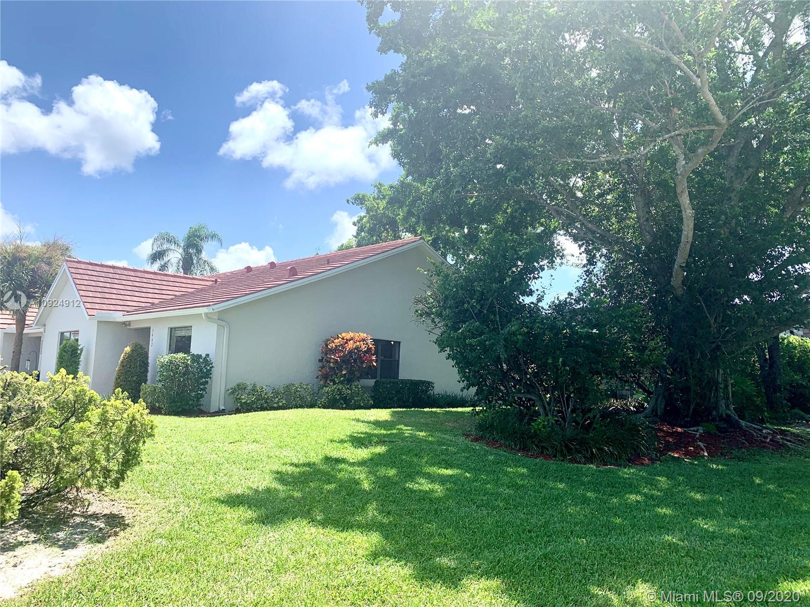 Great location. Light and bring. This Villa has 2 bedrooms and 2.0 full baths. Two park spaces. Corner unit. Gorgeous wood kitchen with granite counter tops and stainless steel appliances. Roof is 8 years old and A/C is 5 years old. Screened covered patio and large garden area. Close to Del Prado Elementary. This home is like a single home in one of the best locations of Boca. Near to I-95 and Florida Turnpike. Beautiful small community You can walk to the supermarket, to the bank and nice restaurants Ready to move.