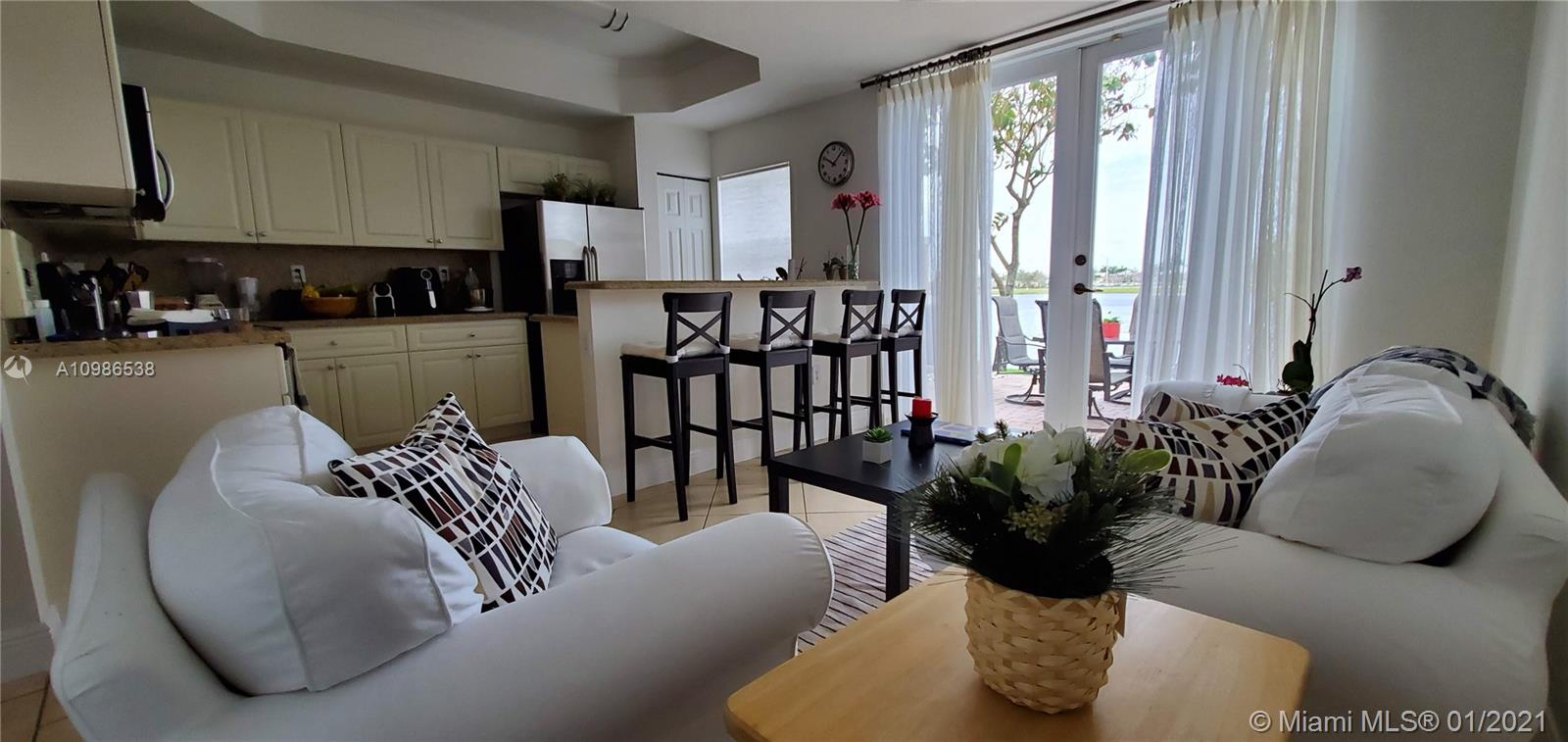 Great location. Beautiful townhome within a private secure community. The floorplan includes 2 bedrooms and 2 bathrooms on the upper level, with a half bathroom in the lower level. Separate living and dining area in the main level, with a modern kitchen that opens to the Florida room. You can watch the sunset while enjoying the water views or enjoy a family barbecue on your private patio. Excellent location, walking distance to the Shops at Pembroke Gardens, restaurants, Pembroke Lakes. Close to I-75 and other major roads.