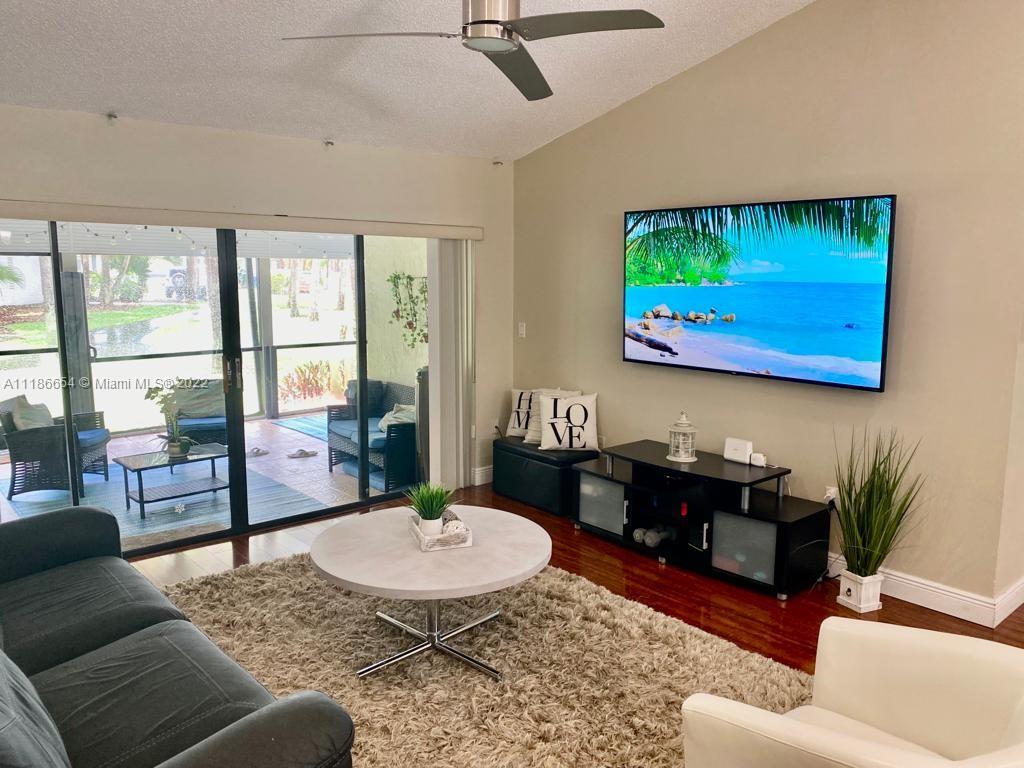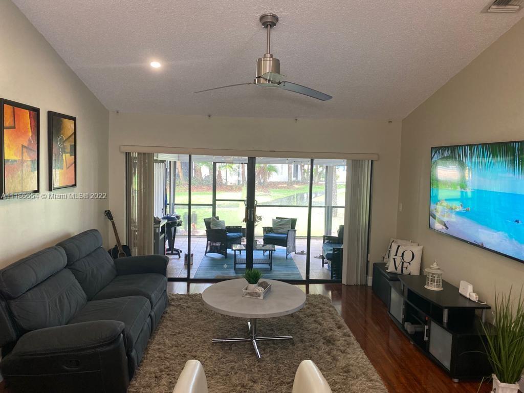 Lovely Villa in desirable Weston. NEW 2021 Roof. The home is equipped with a Kitchen with granite counter tops and Stainless steel appliances. Huge Master bedroom for an office space, nice atrium inside unit, large living and dining room area. Laminate floor throughout house. Steps to complex pool. Covered screened-in porch with a garden view. The community has many amenities including bowling, roller-skating, basketball, swimming, Tennis Court. Not to mention, Weston is an A rated school district. HOA fee covers basic cable, water & sewer, grass cutting and property insurance on the roof. A great opportunity to live comfortably here!