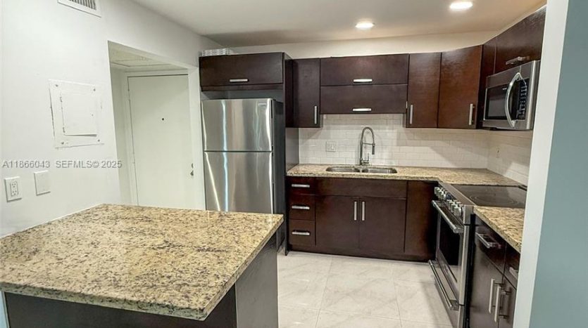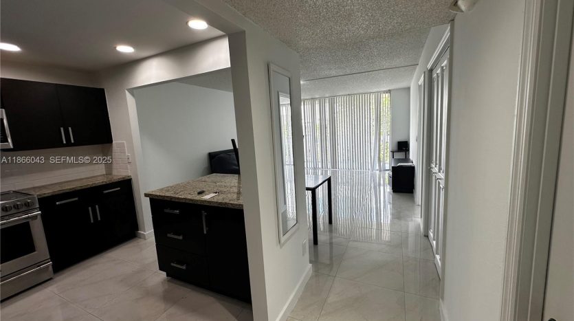 Welcome to this beautifully remodeled 1-bedroom, 1.5-bath residence offering comfort, style, and convenience in an excellent location. The spacious primary suite features a large walk-in closet and a fully upgraded bathroom. A convenient half-bath for guests adds extra value updated with elegant porcelain tile flooring throughout, a modern upgraded kitchen with stainless steel appliances, and fully renovated bathrooms. The unit is move-in ready and even comes furnished with a brand-new sleeper sofa, stylish barstools, Enjoy resort-style amenities including tennis courts, clubhouse with additional pool, fitness center, yoga, sauna, bowling alley, barbecue areas, and a cultural center. 24/7 security, and is very well-maintained. 40 Year Inspection is Complete 50 Year Inspection In Progress